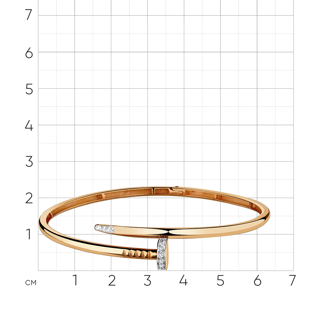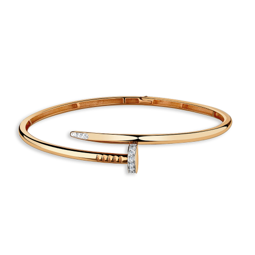 Стильный жесткий браслет «Гвоздь Картье», выполненный из красного и белого золота 585 пробы и украшенный сверкающими фианитами, — это украшение, которое подчеркивает элегантность и индивидуальность