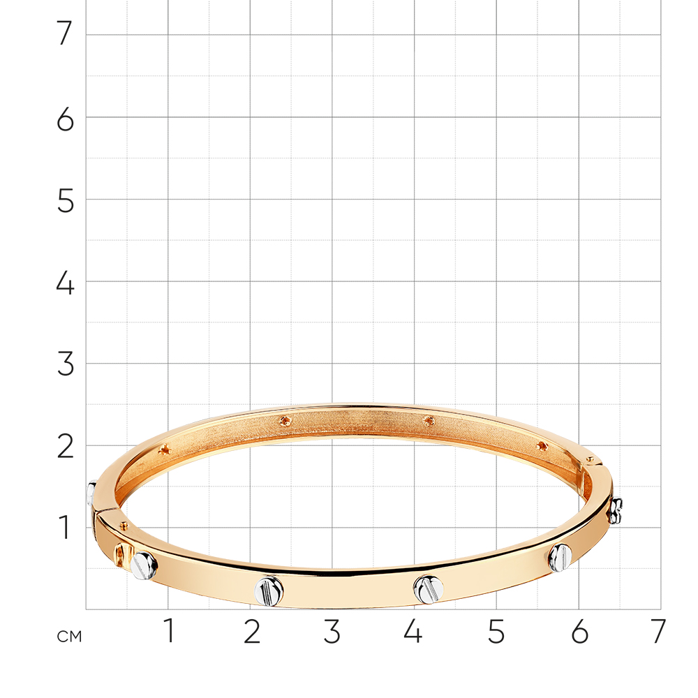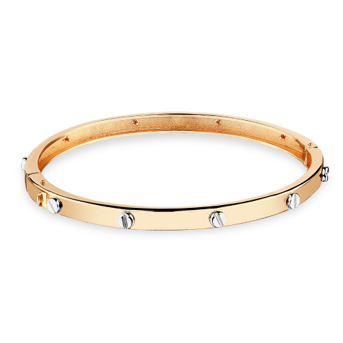 Жесткий модный браслет выполнен с сочетанием красного и белого золота 585 пробы