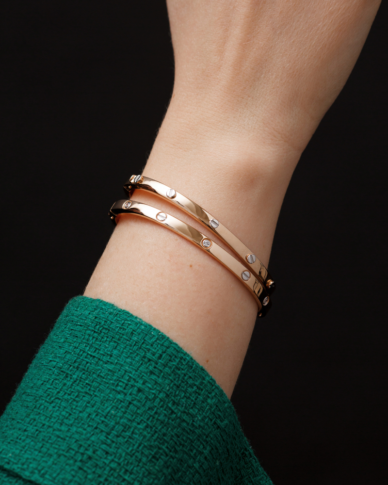 Жесткий модный браслет выполнен с сочетанием красного и белого золота 585 пробы. Браслет оснащен удобным замком и страховкой на замок, что обеспечивает дополнительную надежность. Изделие представлено брендом CARLIN. В комплект поставки входит: