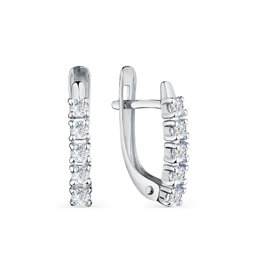 Элегантные серьги выполнены из белого золота 585 пробы, украшенные дорожками ярких фианитов. Эти серьги отличаются хоть и простым, но изысканным и красивым дизайном. Тип замка - английский, самый надежный и удобный. Изделие представлено брендом CARLIN. В комплект поставки входит: