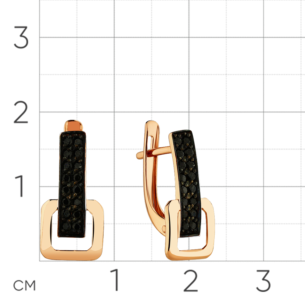 Стильные серьги выполнены из красного золота 585 пробы, украшены великолепными чёрными фианитами, которые подчёркивают блеск и красоту драгоценного металла