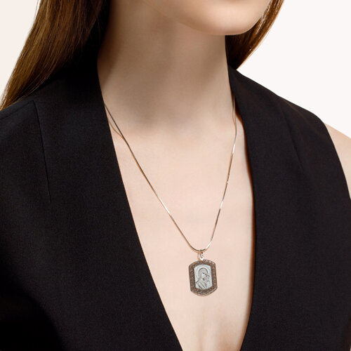 Элегантная серебряная подвеска выполнена из качественного серебра 925 пробы и украшена образом Божьей Матери