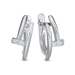 Модные и стильные серьги выполнены из белого золота 585 пробы. Строгие линии дизайна подчёркивают дорожки сверкающих фианитов. Тип замка - английский, самый надежный и удобный. Изделие представлено брендом "DEL`TA". Вставки: 10 Фианит Кр 1,00. В комплект поставки входит: