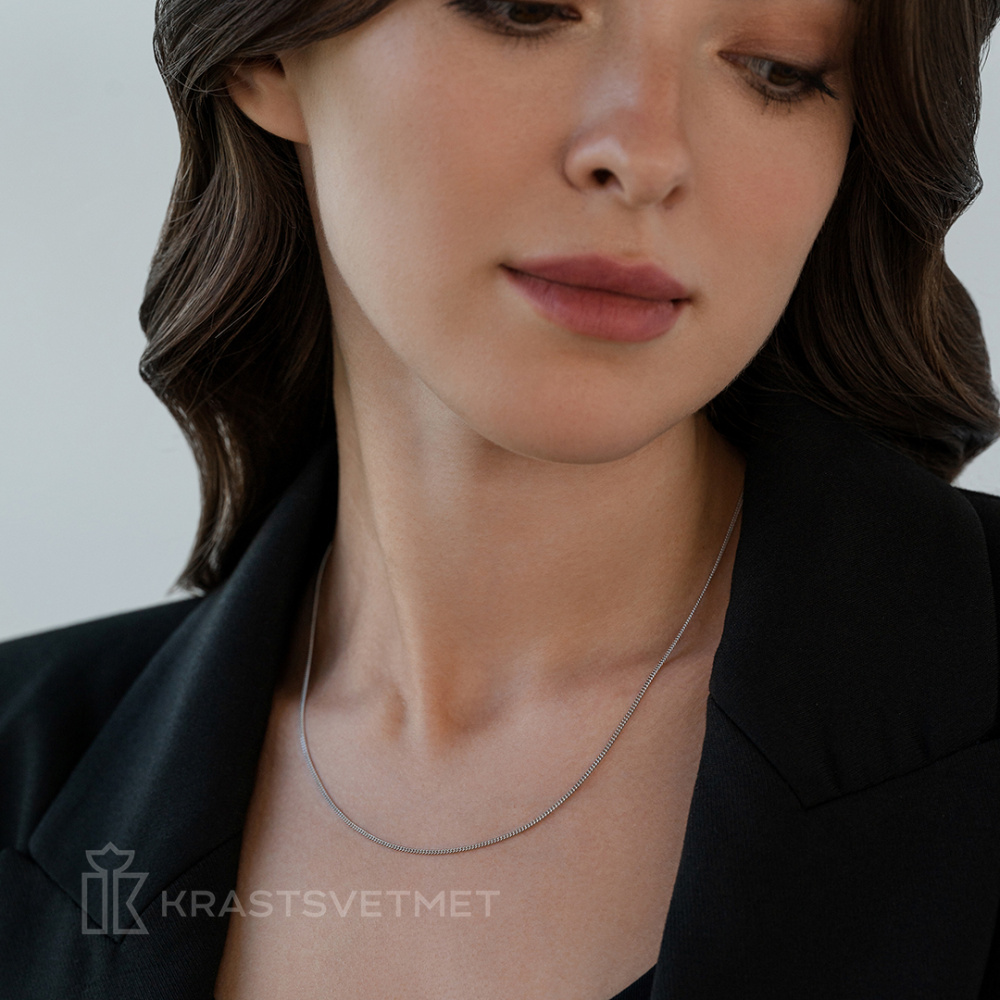 Полновесная цепь из благородного белого золота 585 пробы с эстетичным панцирным плетением. Основное отличие панцирного плетения от других конструкций заключается в параллельном расположении звеньев в одной плоскости, что обеспечивает изделию гладкую поверхность и ощущение целостности. Этот подход позволил создать цепочку, поражающую своим элегантным внешним видом и высокой прочностью. Она идеально подходит как самостоятельное украшение или в сочетании с подвеской, являя собой образец надежного и стильного аксессуара. Диаметр проволки 0,35мм. Представлено брендом КРАСЦВЕТМЕТ. В комплект поставки входит: