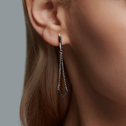 Удлинённые серьги с изящными цепочными подвесками, выполнены из белого золота 585 пробы