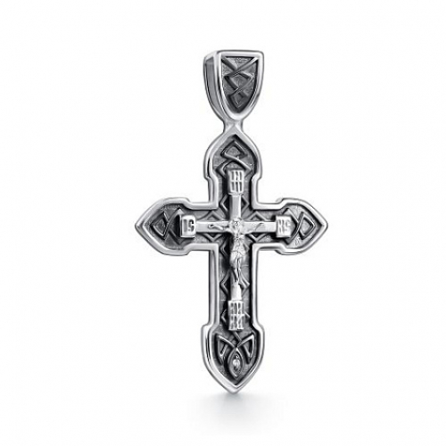 Элегантный православный крест выполнен из качественного серебра 925 пробы с чернением, придающим изделию благородный и глубокий оттенок
