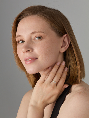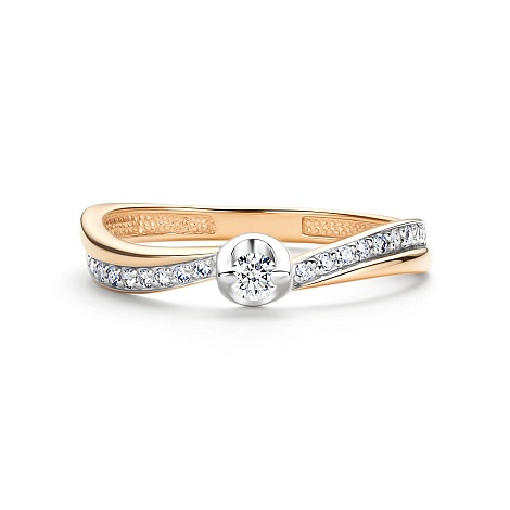 Изысканное помолвочное кольцо выполнено из благородного сочетания красного и белого золота 585 пробы, подчеркивая элегантность и утонченность