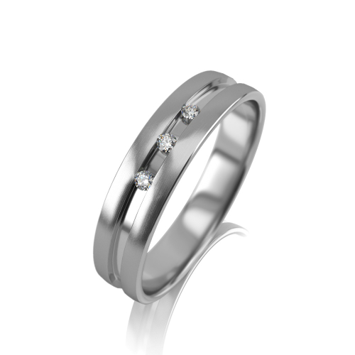 Оригинальное кольцо из белого золота 585 пробы, особую оригинальность моделе придает сочетание глянцевой яркой поверхности в виде проточки в середине кольца, с сатиновой приглушеной, такой контраст очень гармоничен. Кроме того, кольцо украшенно 3-мя бриллиантами, которые придают кольцу яркий, искрящийся блеск. Представлено брендом ТИМОФЕЕВЪ. В комплект поставки входит: