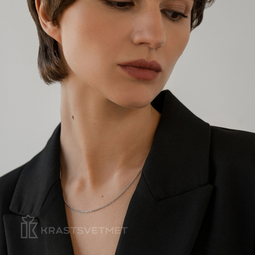 Эффектная полновесная цепь из белого золота 585 пробы с традиционным якорным плетением и уникальной алмазной гранью. Благодаря специальной обработке поверхность изделия ярко сверкает и привлекает взгляды. Это одно из лучших базовых украшений благодаря прочности конструкции и роскошному внешнему виду, подходящее как мужчинам, так и женщинам. Диаметр проволки 0,45. Представлено брендом КРАСЦВЕТМЕТ. В комплект поставки входит:
