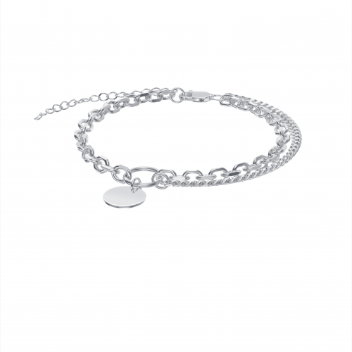 Стильный универсальный браслет из двух плетений ролло (d 1,2 мм) и гурмета (d 0,9 мм) с акцентом в виде диска (d 9 мм) выполнен из серебра 925 пробы