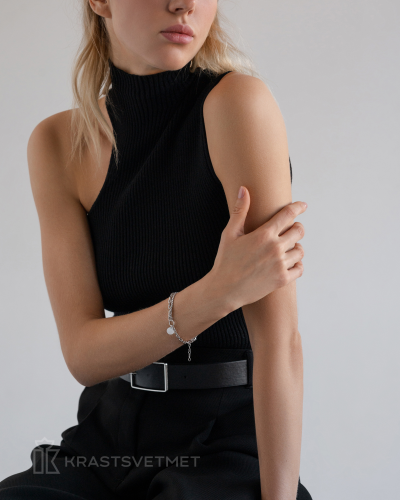 Стильный универсальный браслет из двух плетений ролло (d 1,2 мм) и гурмета (d 0,9 мм) с акцентом в виде диска (d 9 мм) выполнен из серебра 925 пробы. Длина регулируется за счет добора из одинарного сингапура (d 0,6 мм), длина - 5 см. Замок карабин - прочный и надежный. Украшение покрыто металлом платиновой группы - родием, он защищает серебро от потемнения и придает искрящийся яркий блеск. Изделие представлено брендом "КРАСЦВЕТМЕТ" В комплект поставки входит: