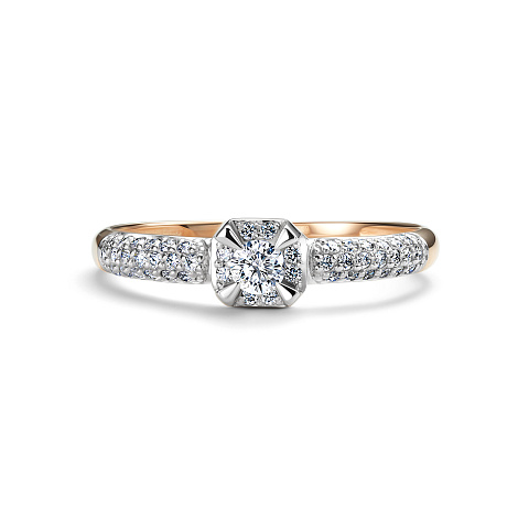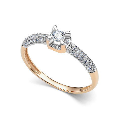 Изысканное кольцо выполнено из благородного сочетания красного и белого золота 585 пробы, подчеркивая свою элегантность и уникальность. Украшением служат сверкающие бриллианты, создающие игру света и добавляющие украшениям роскоши. Такое сочетание металлов и драгоценных камней делает кольцо универсальным и подходящим как для повседневного ношения, так и для особых случаев. Представлено брендом АЛЬКОР. Средняя характеристика камней: 1 Бриллиант Круг 57 0.116 4/6, 46 Бриллиант Круг 57 0.188 4/6 В комплект поставки входит: