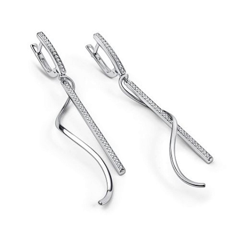 Удлиненные серьги выполнены из качественного серебра 925 пробы и украшены сверкающими фианитами