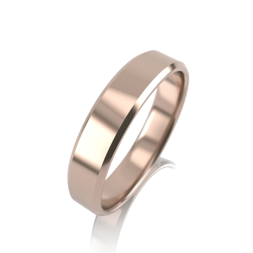 Полновесное обручальное кольцо с прямым профилем "шайба", выполнено из красного золота 585 пробы, особую оригинальность кольцу придают скошенные края в сочетании с идеально гладкой поверхностью кольца