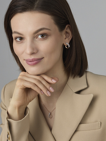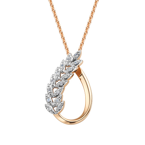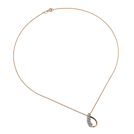 Элегантное колье выполнено из благородного сочетания красного и белого золота 585 пробы, украшено сверкающими бриллиантами
