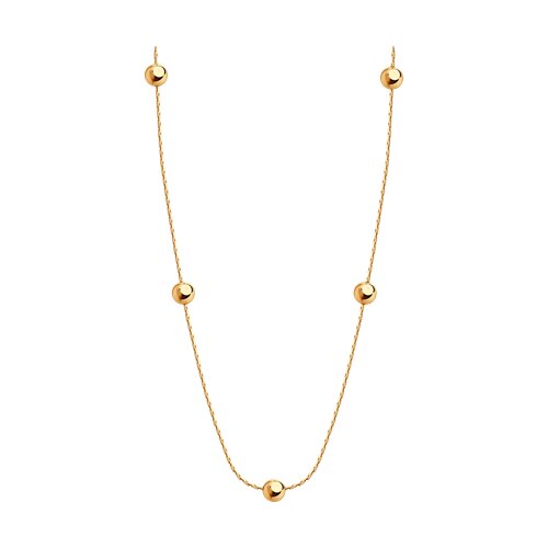 Цепочное колье, украшенное изящными вставками в виде шариков, выполнено из красного золота 585 пробы. Колье отличается простотой и элегантностью. Оно не имеет лишних деталей, что делает его универсальным и подходящим для любого образа. Такой дизайн будет всегда актуальным и модным.