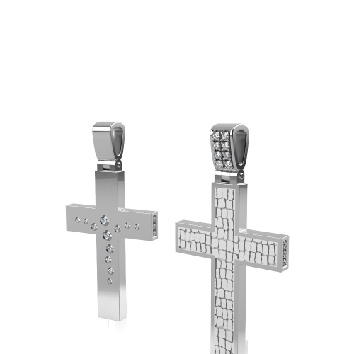 Стильная подвеска-крест, выполненная из серебра 925 пробы в сочетании с белой керамикой и украшенная россыпью фианитов