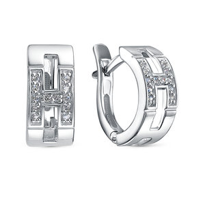 Стильные серьги выполнены из родированного серебра 925 пробы, украшены дорожками сверкающих фианитов, которые своими уникальными преломляющими свойствами могут сравниться лишь с бриллиантом