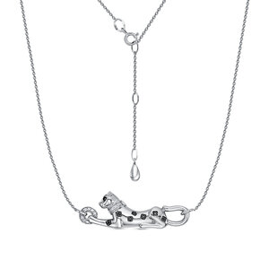 Изящное цепочное колье с вставкой в анималистическом стиле, украшенной чёрными фианитами, выполнено из серебра 925 пробы