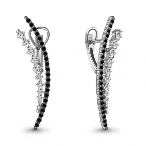 Волшебные серебряные серьги выполнены из качественного серебра 925 пробы и украшены черными нанокристаллами и сверкающими белыми фианитами