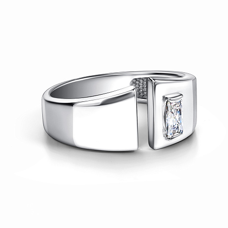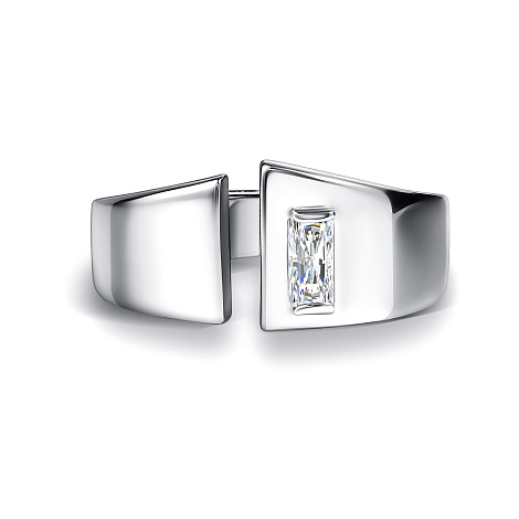 Объёмное кольцо классического дизайном, выполнено из серебра 925 пробы. Изделие покрыто родием, драгоценным металлом платиновой группы, который делает серебро устойчивым к повреждениям и сохраняет искрящийся блеск. Представлено брендом АЛЬКОР. Вставки: 1 Фианит Белый Багет 0,338 В комплект поставки входит: