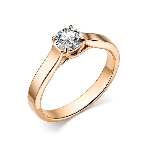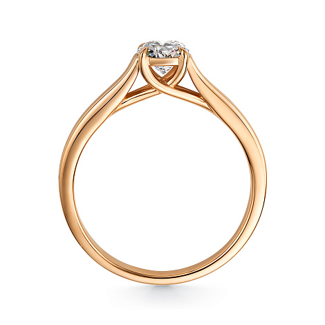 Лаконичное помолвочное кольцо в стиле минимализм с роскошным бриллиантом выполнено в красном золоте 750 пробы