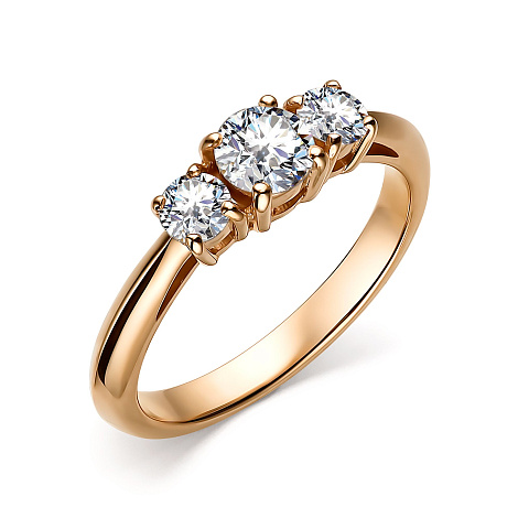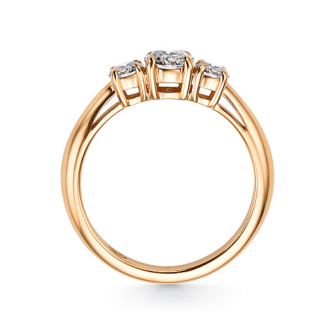 Кольцо из красного золота с тремя бриллиантами сочетает в себе классическую элегантность и современный стиль