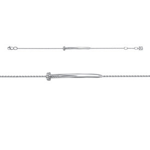 Стильный оригинальный браслет на основе якорного плетения с декоративной вставкой в виде гвоздя выполнен из родированного серебра 925 пробы. Родий - это металл платиновой группы, который защищает украшение от внешних воздействий и долго сохраняет первоначальный внешний вид. Выразите свою индивидуальность украшениями с уникальным дизайном. Украшение представлено брендом "DEL`TA". Средняя характеристика камней: 11 Фианит. В комплект поставки входит: