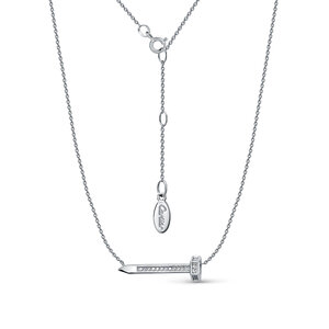 Модное и оригинальное цепочное колье с подвеской в виде гвоздя, украшенной фианитами, выполнено из родированного серебра 925 пробы
