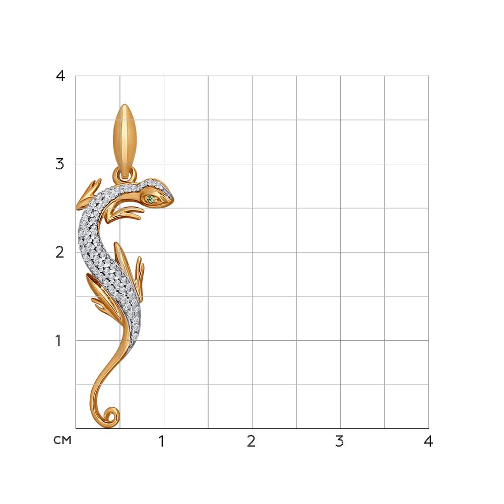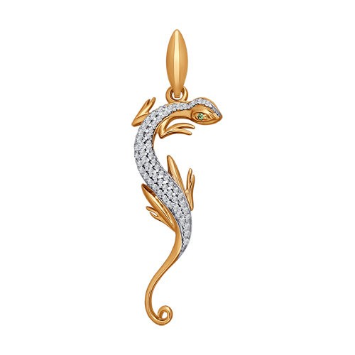 Подвеска в виде ящерки из красного и белого золота 585 пробы с россыпью фианитов, от бренда SOKOLOV.