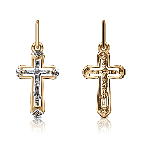 Подвеска - крест, в котором исполнены все каноны Православной Церкви, выполнен с сочетанием красного и белого золота 585 пробы