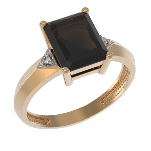 Элегантное кольцо выполнено из красного золота и украшено сверкающими фианитами и таинственным раух-топазом