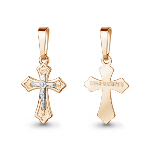 Православный крестик выполнен из благородного сочетания красного и белого золота 585 пробы