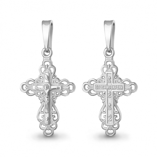 Православный крестик выполнен из благородного белого золота 585 пробы