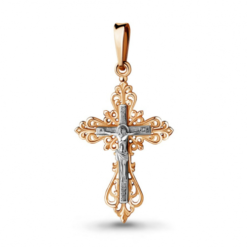 Православный крестик выполнен из благородного сочетания красного и белого золота 585 пробы