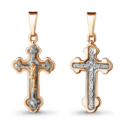 Православный крестик выполнен из благородного сочетания красного и белого золота 585 пробы