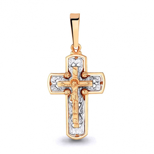 Православный крестик выполнен из благородного сочетания красного и белого золота 585 пробы