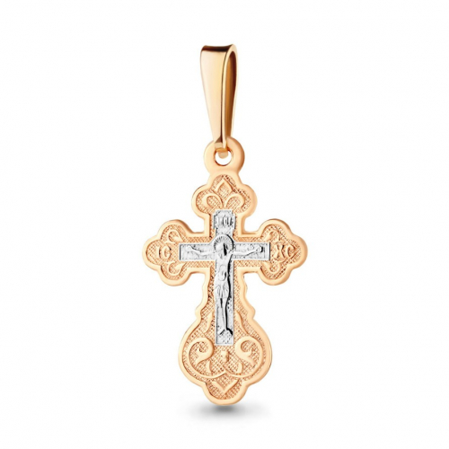 Православный крестик выполнен из благородного сочетания красного и белого золота 585 пробы