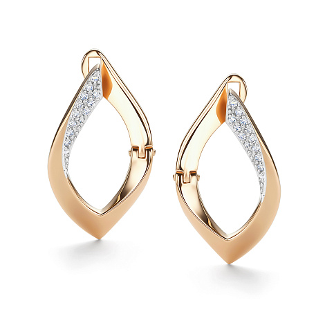 Элегантные серьги выполнены из красного и белого золота 585 пробы, создавая гармоничный контраст между двумя оттенками металла
