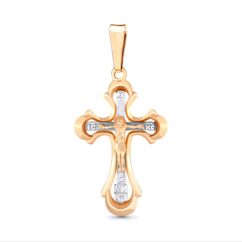 Православный крестик выполнен из благородного сочетания красного и белого золота 585 пробы