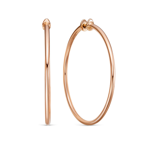 Круглые серьги Конго диаметром 3,5 см изготовлены из прочного и надежного красного золота 585 пробы