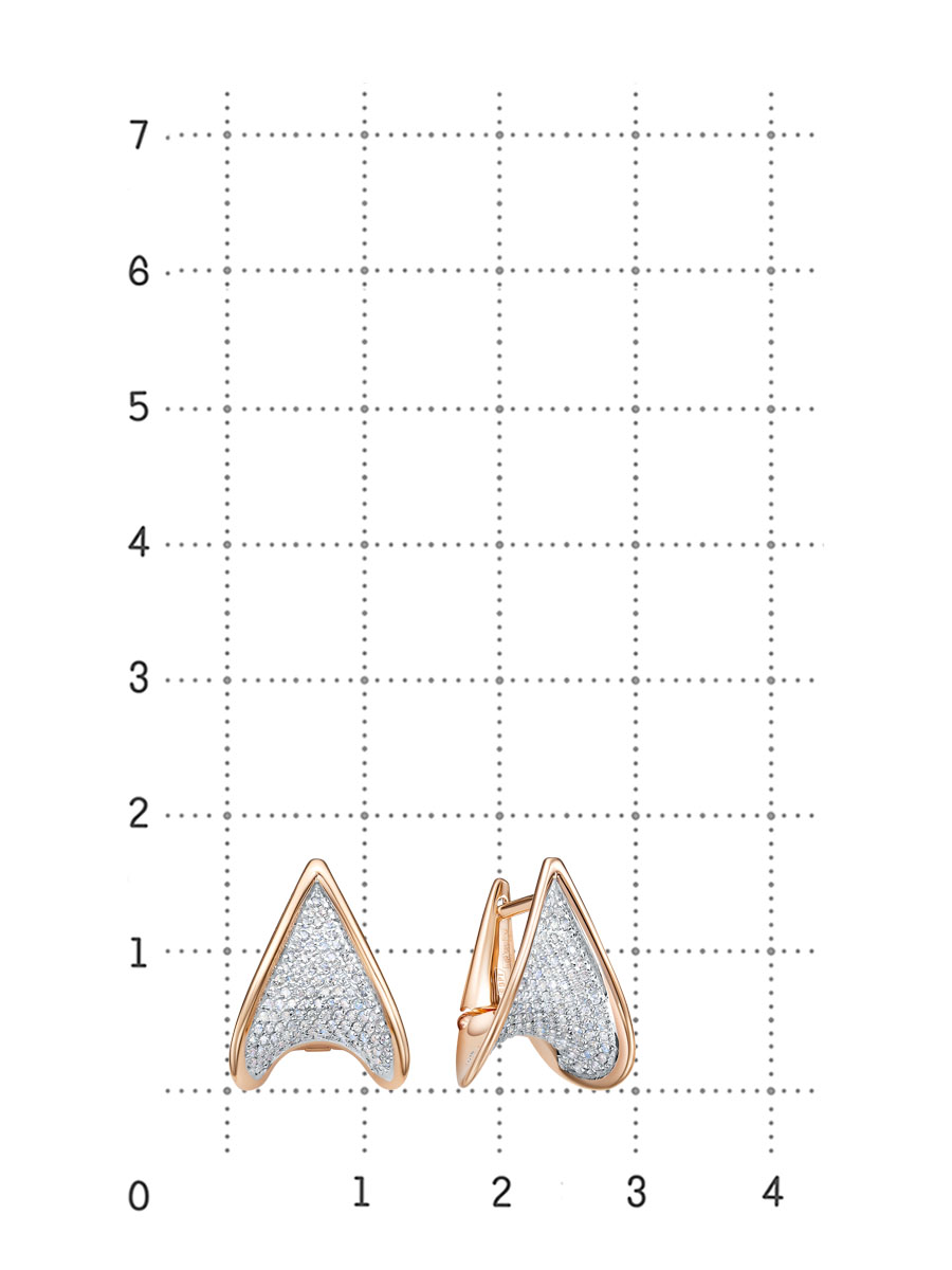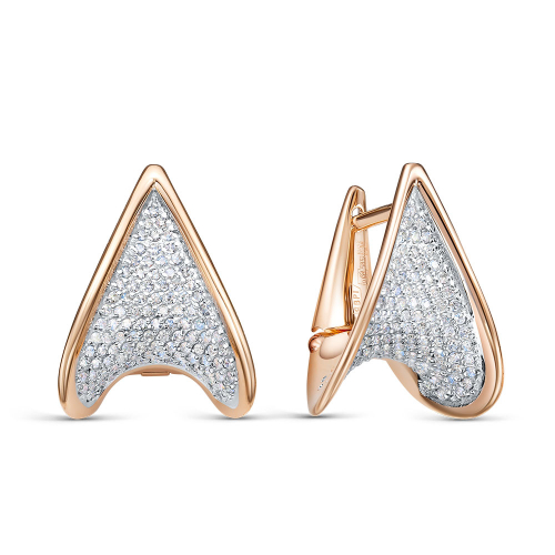 Изящные серьги из сочетания красного и белого золота 585 пробы украшены бриллиантами, обеспечивающими игру света и привлекающее внимание мерцание
