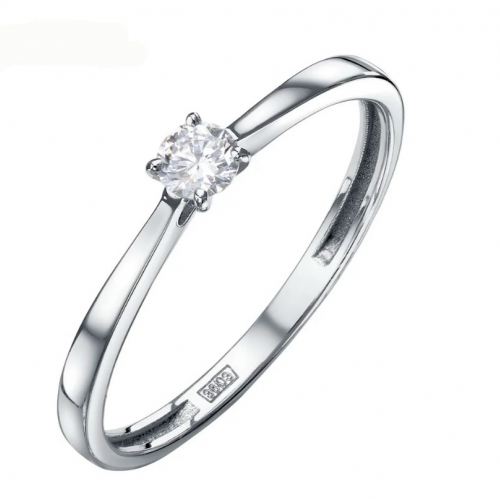 Помолвочное кольцо из благородного белого золота 585 пробы украшено сверкающим бриллиантом