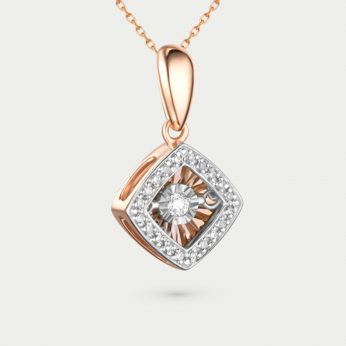 Лаконичная подвеска в стиле минимализм выполнена в сочетании красного и белого золота 585 пробы, украшена "танцующим" бриллиантом
