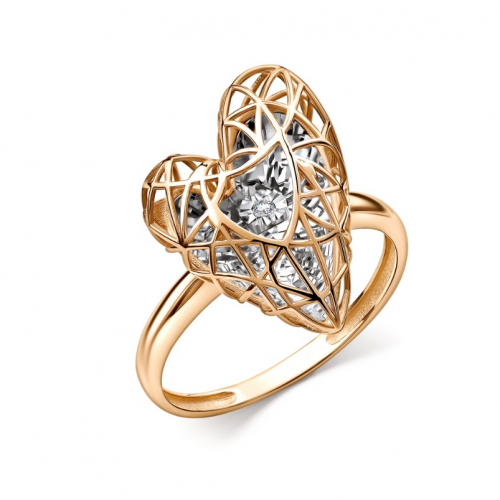 Уникальное кольцо выполнено из сочетания красного и белого золота, подчеркивая изысканность и гармонию контрастных оттенков