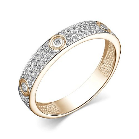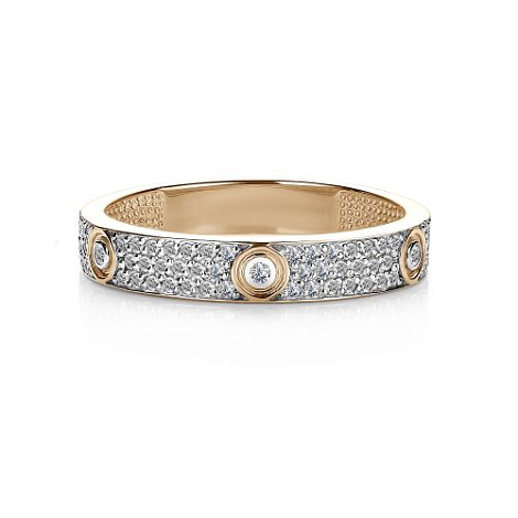 Стильное и современное кольцо, украшенное дорожками сверкающих бриллиантов, выполнено с сочетанием красного и белого золота 585 пробы