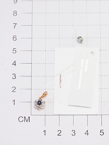 Изящная подвеска выполнена в сочетании красного и белого золота 585 пробы, украшенная натуральным сапфиром и бриллиантами