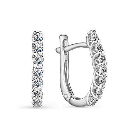 Элегантные серьги, украшенные дорожками сверкающих бриллиантов, выполнены из белого золота 585 пробы. Тип замка - английский, самый надежный и удобный. Именно такие украшения универсально подходят к какому угодно образу и способны изящно завершить любой наряд.