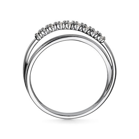 Стильное кольцо, украшенное дорожкой сверкающих бриллиантов, выполнено из белого золота 585 пробы