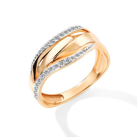 Очаровательное широкое кольцо из красного золота 585 пробы с россыпью драгоценных камней